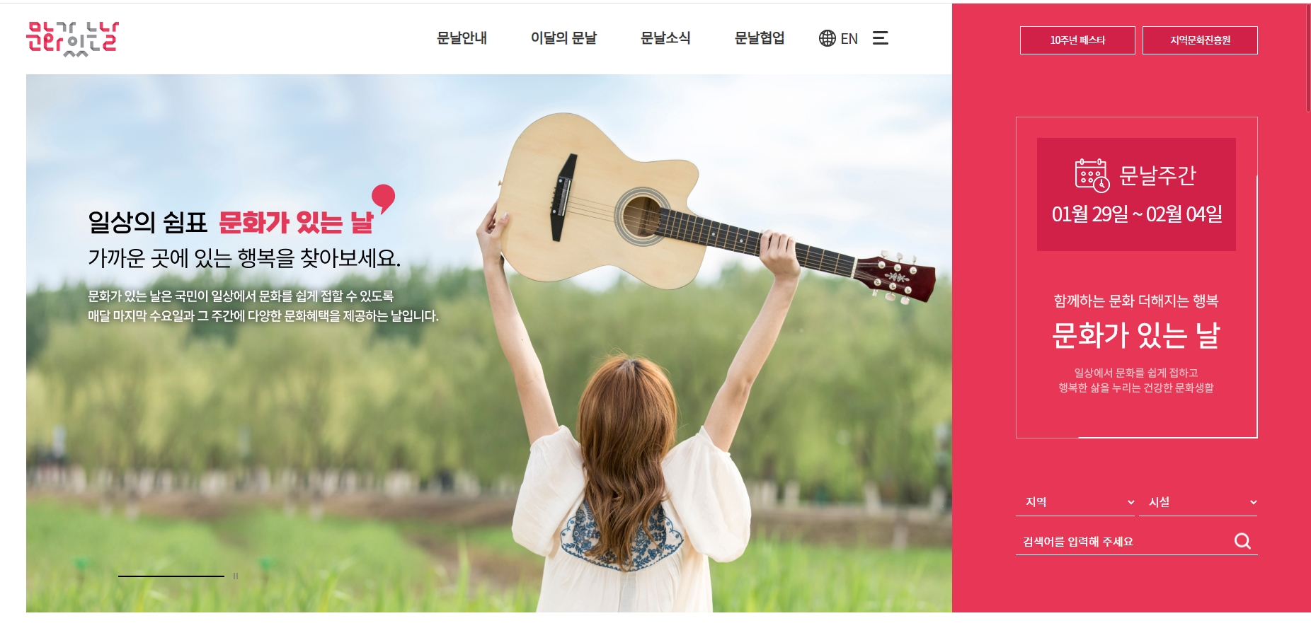 자세한 내용 확인을 원하시면 문화가 있는 날 홈페이지에 안내되어 있으며 문날주간에 하는 지역별 많은 행사를 찾아보실 수 있습니다.